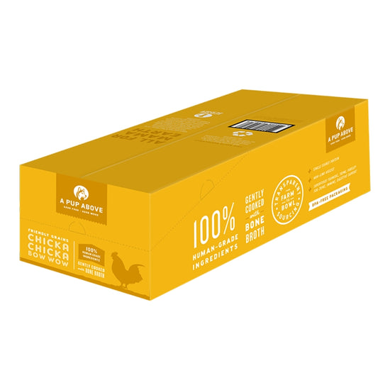 Ingredients: Chicken, chicken liver, sweet potatoes, chicken bone broth, rice, apples, spinach, kale, turmeric, thyme, parsley, APA nutrient mix.
