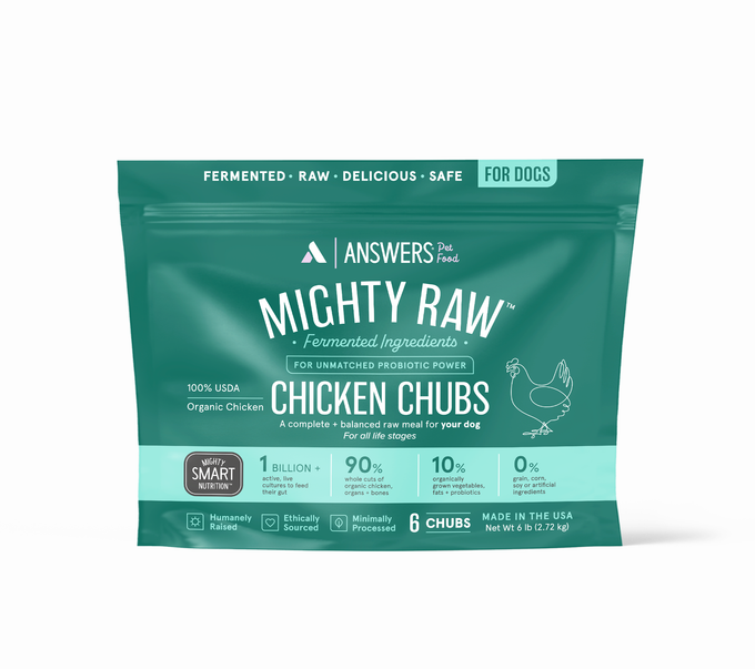 Ingredients: Organic Chicken, organic chicken heart, organic chicken liver, organic ground chicken bone, blend of fermented vegetables* (carrots, yellow squash, green beans), fermented raw whey, duck eggs, fermented raw cod liver, raw butter, kefir cultured milk (dried Streptococcus thermophilus fermentation product, dried Lactobacillus delbrueckii fermentation product, dried Lactobacillus acidophilus fermentation product, dried Bifidobacterium animalis fermentation product, dried Leuconostoc mesenteroides fermentation product, & dried Lactobacillus casei fermentation product) montmorillonite, organic parsley, salt, vitamin E supplement.