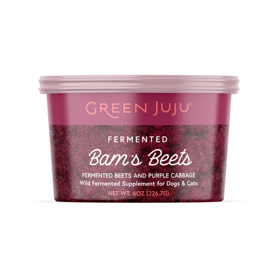 Organic red beets and purple cabbage fermented as a whole food source of probiotics, antioxidants, vitamins, minerals, enzymes and more.