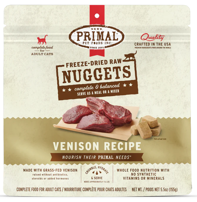 Venison (with ground bone), Venison Livers, Organic Kale, Organic Squash, Organic Apples, Organic Carrots, Organic Sunflower Seeds, Organic Pumpkin Seeds, Organic Broccoli, Organic Blueberries, Organic Cranberries, Organic Parsley, Organic Apple Cider Vinegar, Cod Liver Oil, Montmorillonite Clay, Fish Oil, Organic Coconut Oil, Salt, Organic Sunflower Oil, Dried Yeast, Taurine, Vitamin E Supplement, Liquid Lactobacillus acidophilus fermentation product, Liquid Lactobacillus casei fermentation product, Liquid Lactobacillus reuteri fermentation product, Liquid Bifidobacterium animalis fermentation product, Dried Organic Kelp, Organic Ground Alfalfa, Organic Rosemary Extract.