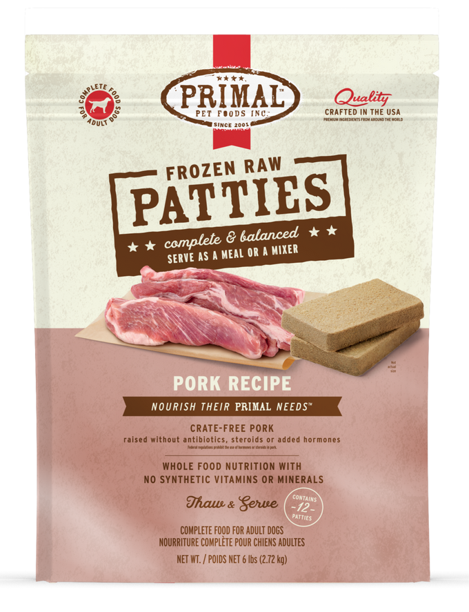Pork (with ground bone), Pork Livers, Organic Kale, Organic Squash, Organic Parsley, Organic Apples, Organic Carrots, Organic Pumpkin Seeds, Organic Sunflower Seeds, Organic Broccoli, Organic Blueberries, Organic Cranberries, Montmorillonite Clay, Organic Apple Cider Vinegar, Fish Oil, Organic Coconut Oil, Dried Yeast, Cod Liver Oil, Vitamin E Supplement, Organic Ground Alfalfa, Dried Organic Kelp, Taurine.