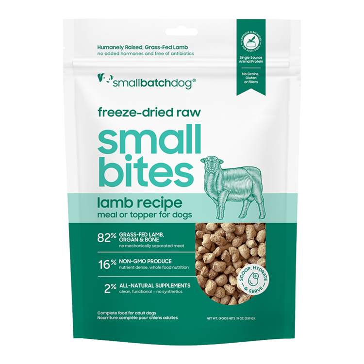 COMPLETE AND BALANCED Recipe - Smallbatch Freeze-Dried Small Bites Lamb Recipe are formulated to meet the nutritional levels established by the AAFCO Dog Food Nutrient Profiles for adult maintenance.