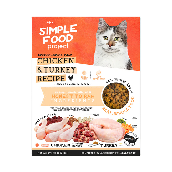 The Simple Food Project Chicken & Turkey Recipe is formulated to meet the nutritional levels established by the AAFCO Cat Food Nutrient Profiles for adult maintenance.