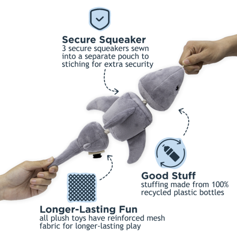 Continue the adventure indoors with Tall Tails' Jointed Shake Play Dog Toy! Shake, tug, squeak, repeat — this jointed structured dog toy is made with you and your pup in mind. Crafted with a flexible design to shake shake shake, your dog will tap into their natural Prey to PlayTM instincts with this toy. In addition, the squeakers is sewn into a separate pouch and stitched into the seam for extra protection.