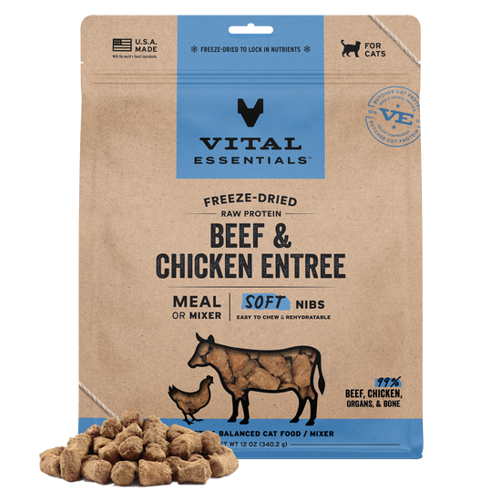 VE Cat Freeze Dried Soft Nibs Beef & Chicken 12oz (PRE ORDER JULY DELIVERY)